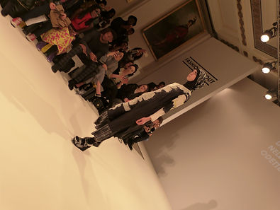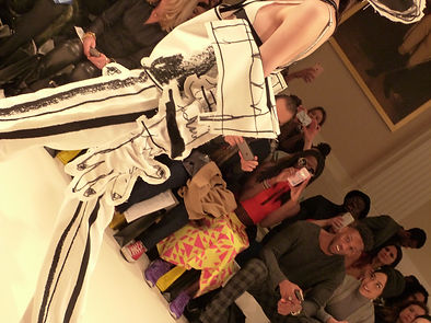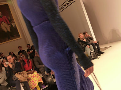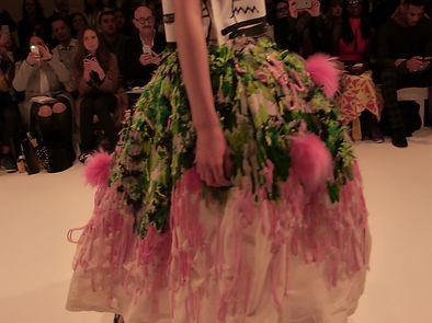 WHY THEY WANT THIS: The 2-dimensional canvas sat stiffly on the models, in elongated angles, meeting their skin on shoulders, waists and just below the knees. Designer Edda, who has recently graduated from London College of Fashion, used her non-dominant hand to etch the drawings out the off-white material, creating a 3-dimensional feel but solely through shading and contouring. Edda’s designs are a simulation of a 2-dimensional world through 3-dimensional bodies, making them quirky, unusual and out there. Edda’s designs stand out for being novelty-like and the lust that is created around novelty is the fact that it becomes a collector item – something not necessarily to wear, but to look at and to own.