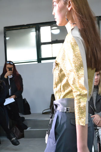 WHY THEY WANT THIS: Toga’s show at the Brewer Street Carpark was all about the statement pieces. Flares, tulle skirts, big, over-imposing coats, feathers, fur bags and sequins that provided brief moments of shock when the light caught on them hit your eyes. Designer Yasuko Furuta explains that she is designing for ‘a complex woman who can only live in chaos.’ The fragmented nature of Furuta’s designs and the looks that made their way down the runway, exemplified this perfectly and succinctly. There was no structure to the ensembles, yet, the woman who Furuta is trying to dress made her presence felt through the choice of looks that were presented.
